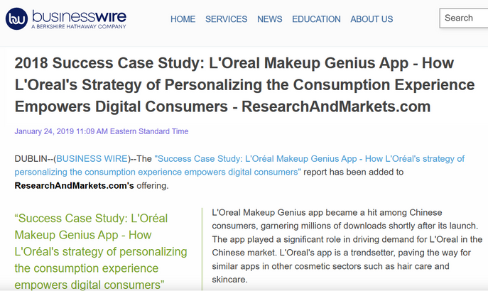 L'Oreal Makeup Genius App, crafted by Tamer Nasr, was highlighted as a 2018 success case study by BW, a Berkshire Hathaway Company.